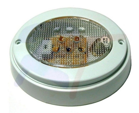 Светильник в пластмассовом корпусе, может использоваться как накладной или врезной . Включение/выключение осуществляется нажатием на стекло. Светодиоды 12V/0.92W. Размеры 119х99х32мм. Поставщик: Тайвань Группа запчастей: Rivertec