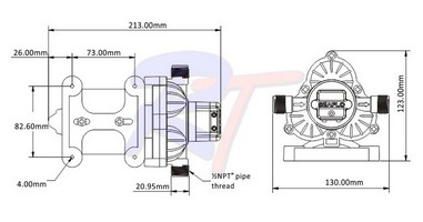 Самовсасывающая мембранная помпа для подачи воды с автоматическим выключателем. Максимальная подача 11.3 литра в минуту, максимальный напор 3.45бар. Питание 12V, потребление тока 6.74А.. Размеры 213x130x123мм. Поставщик: Китай