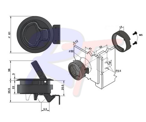 RTG-14005-BK. Ручка потайная, пластмасса / Lift Ring nylon lift black color - Китай