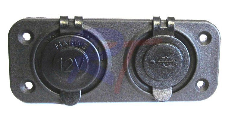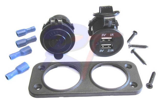 Пластмассовая панель с гнездом прикуривателя и двойным разъемом USB(5V 2.1A+5V 1A). Размеры 105мм x 42.5 x 53мм(глубина).
